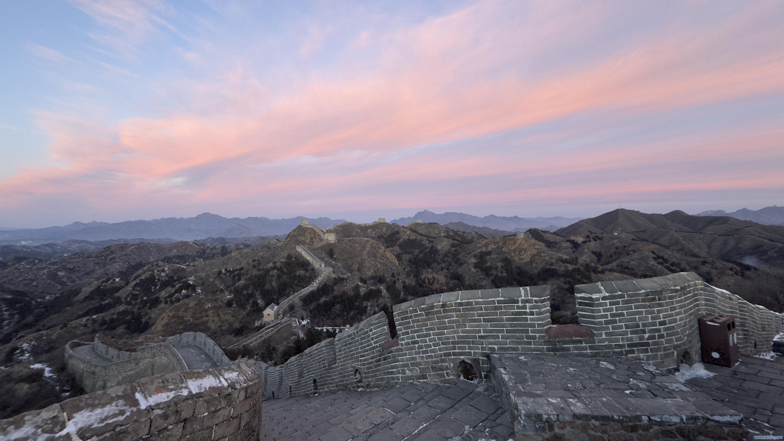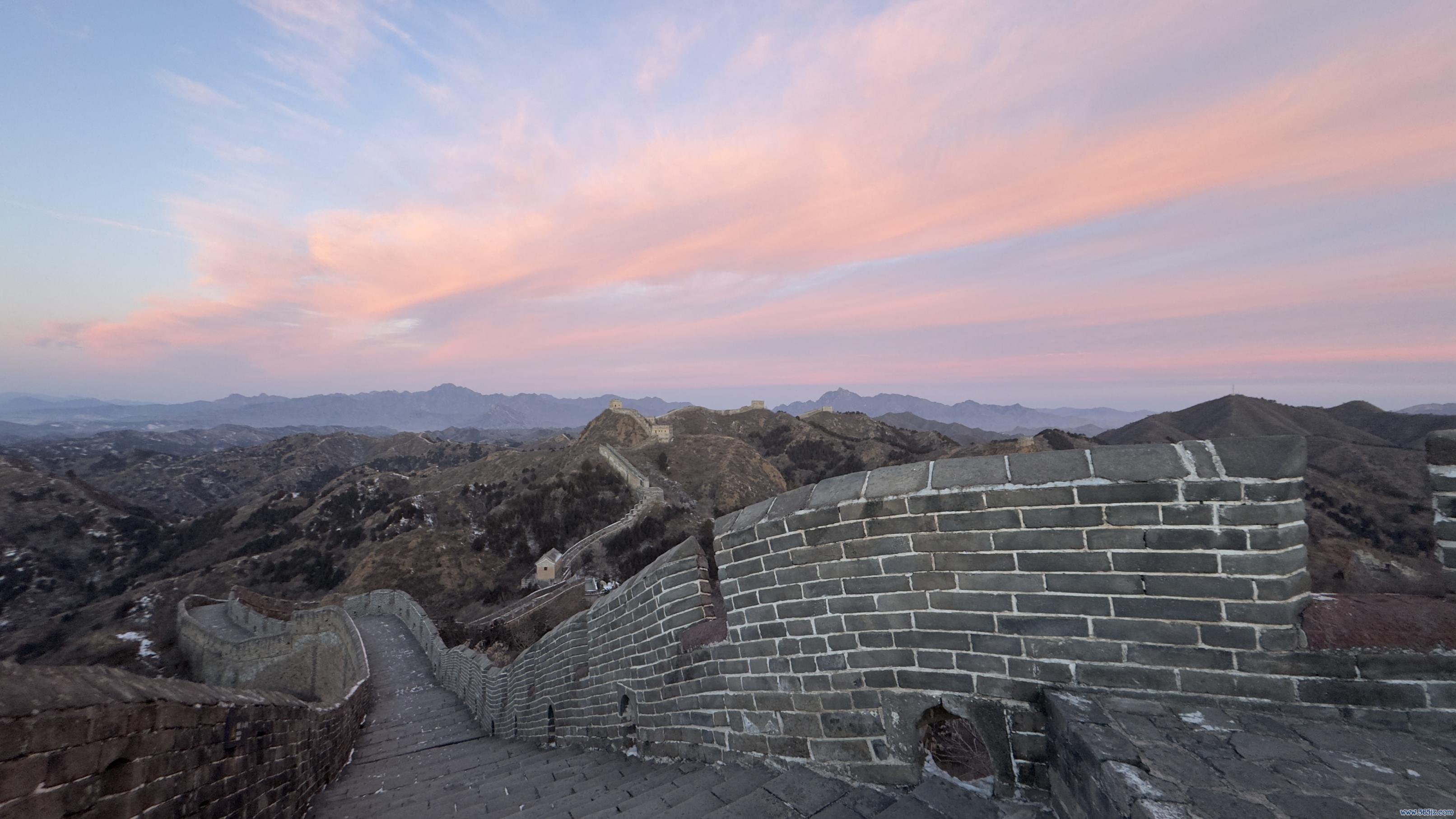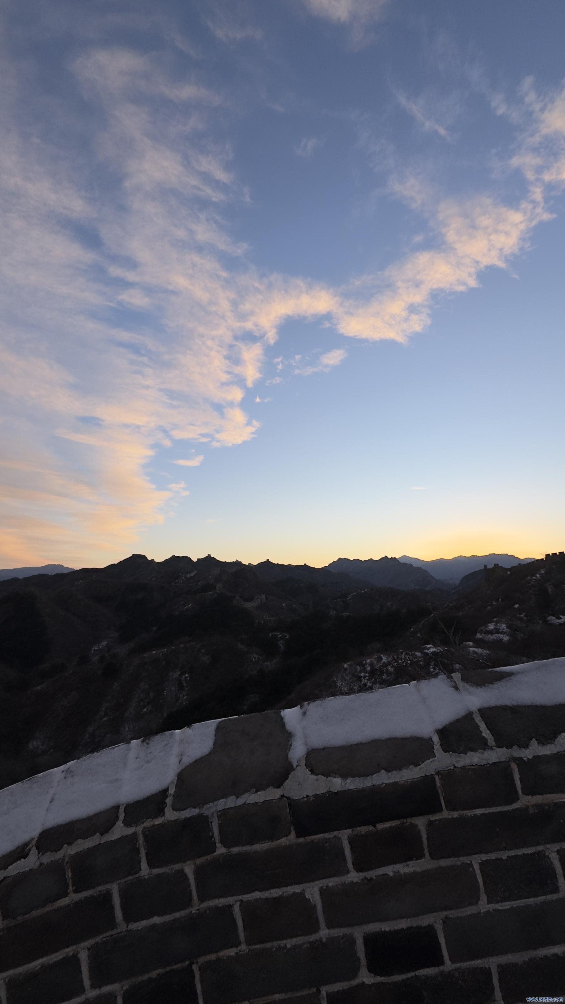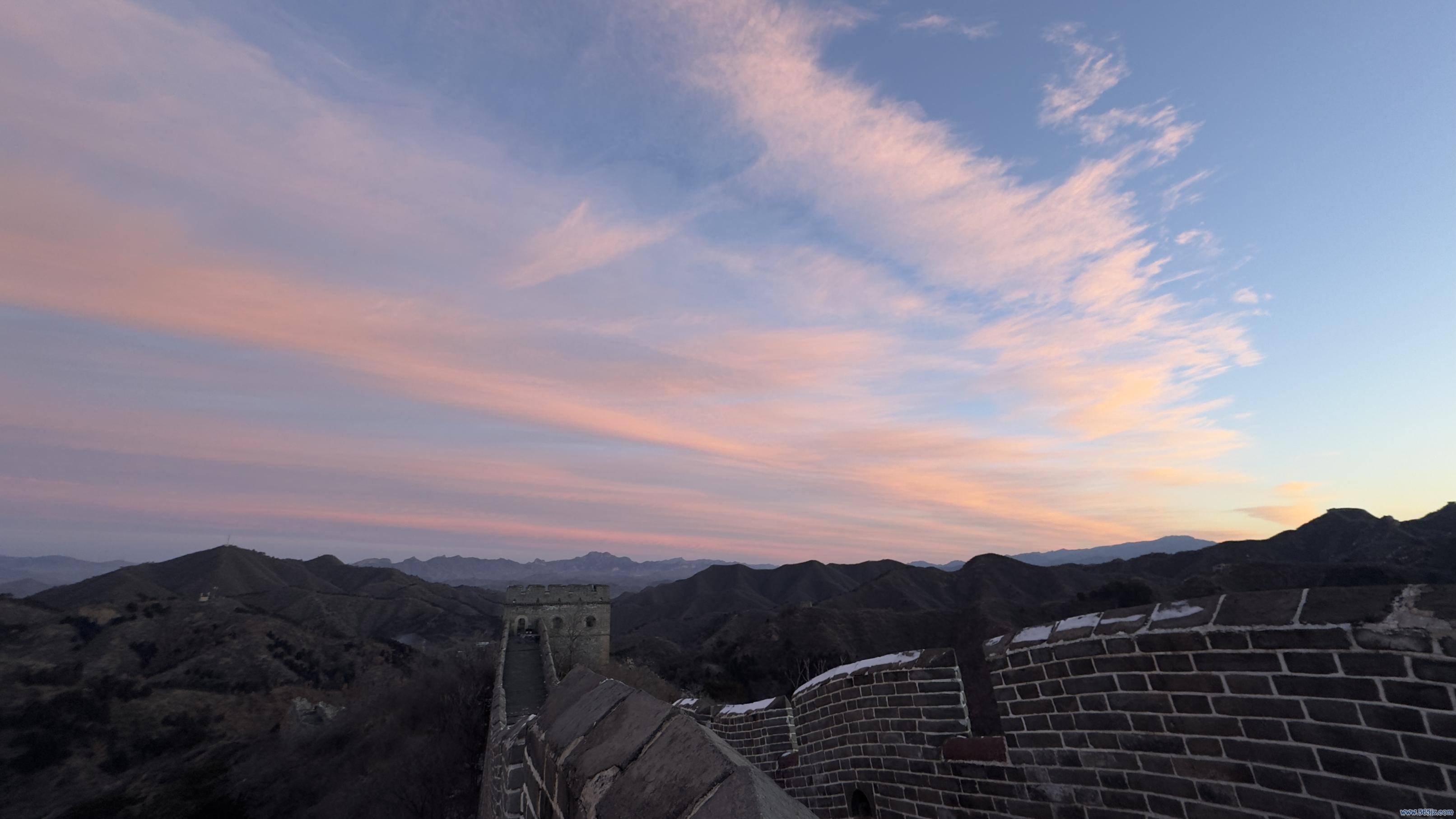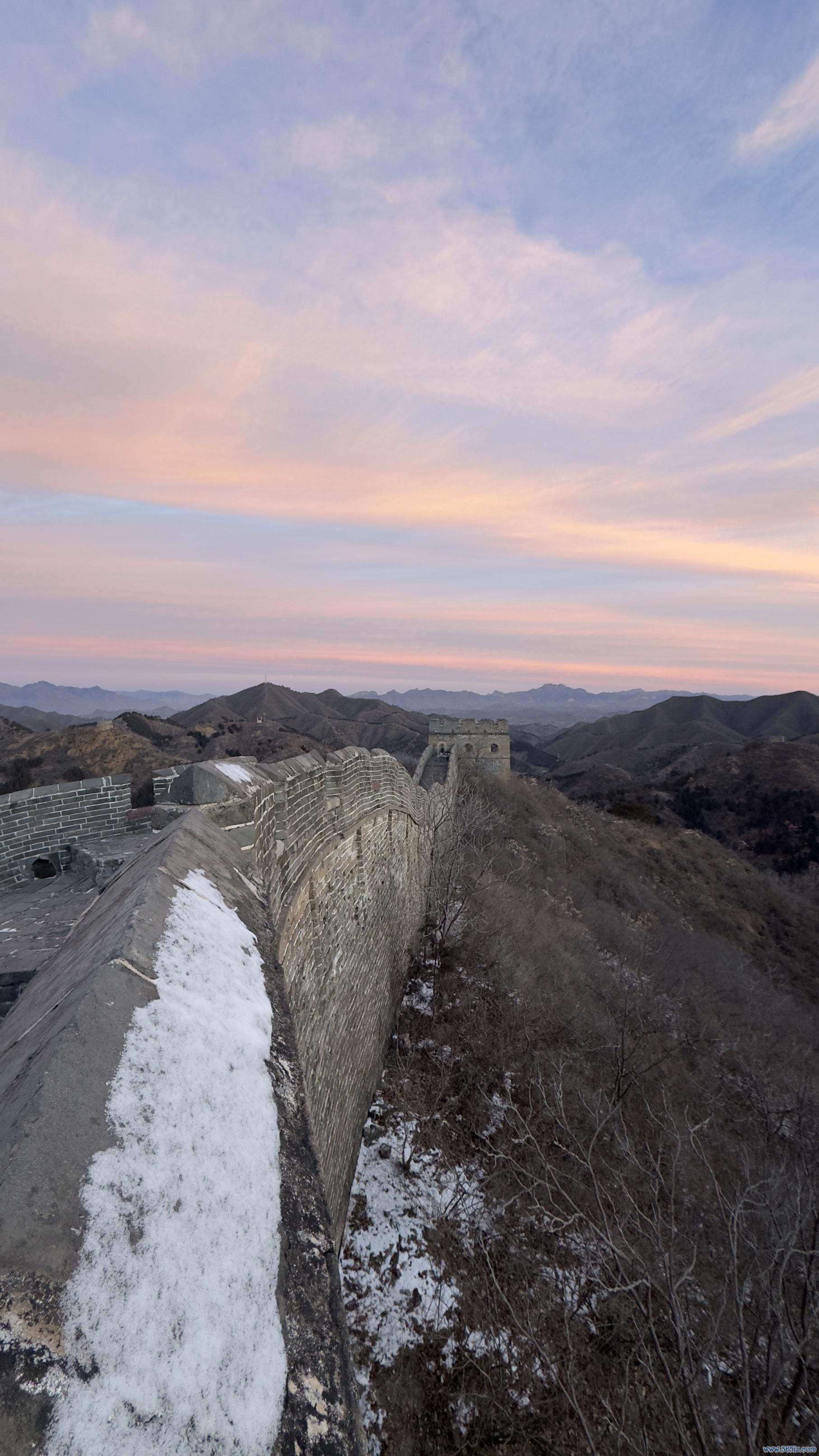 河北滦平:雪后早晨,金山岳长城早霞飘逸预防
