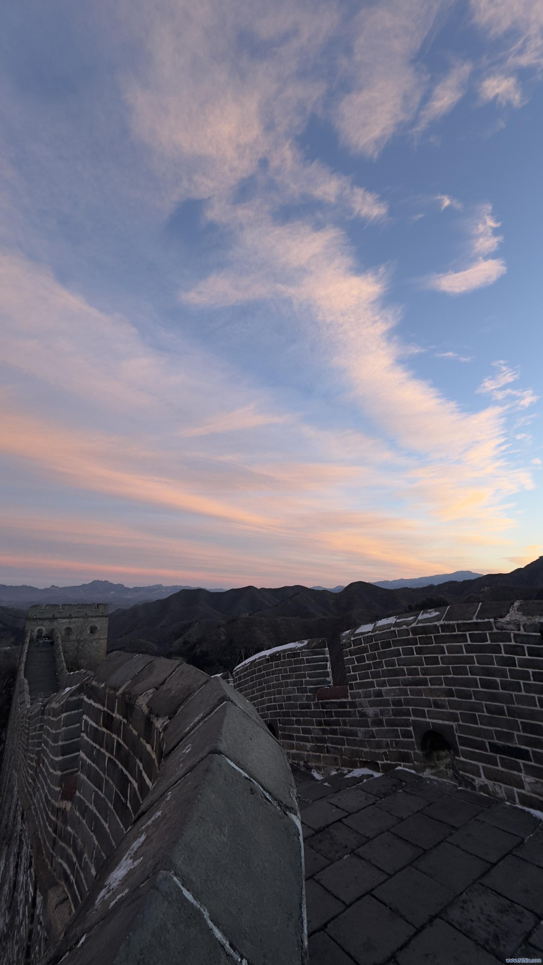 12月24日,雪后早晨,河北省滦平县的金山岳长城,出现飘逸夺认识早霞局势。
