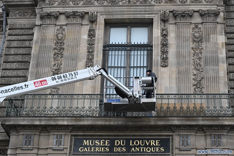 12月23日,工东说念主给法国巴黎卢浮宫阿波罗长廊一处临街窗户加装驻扎栅栏。